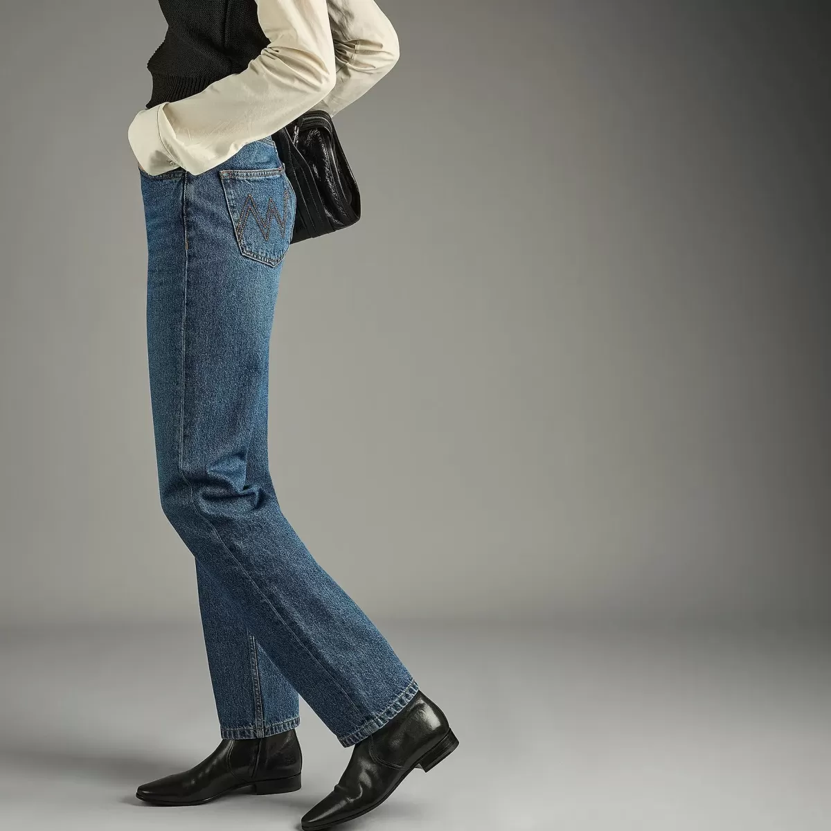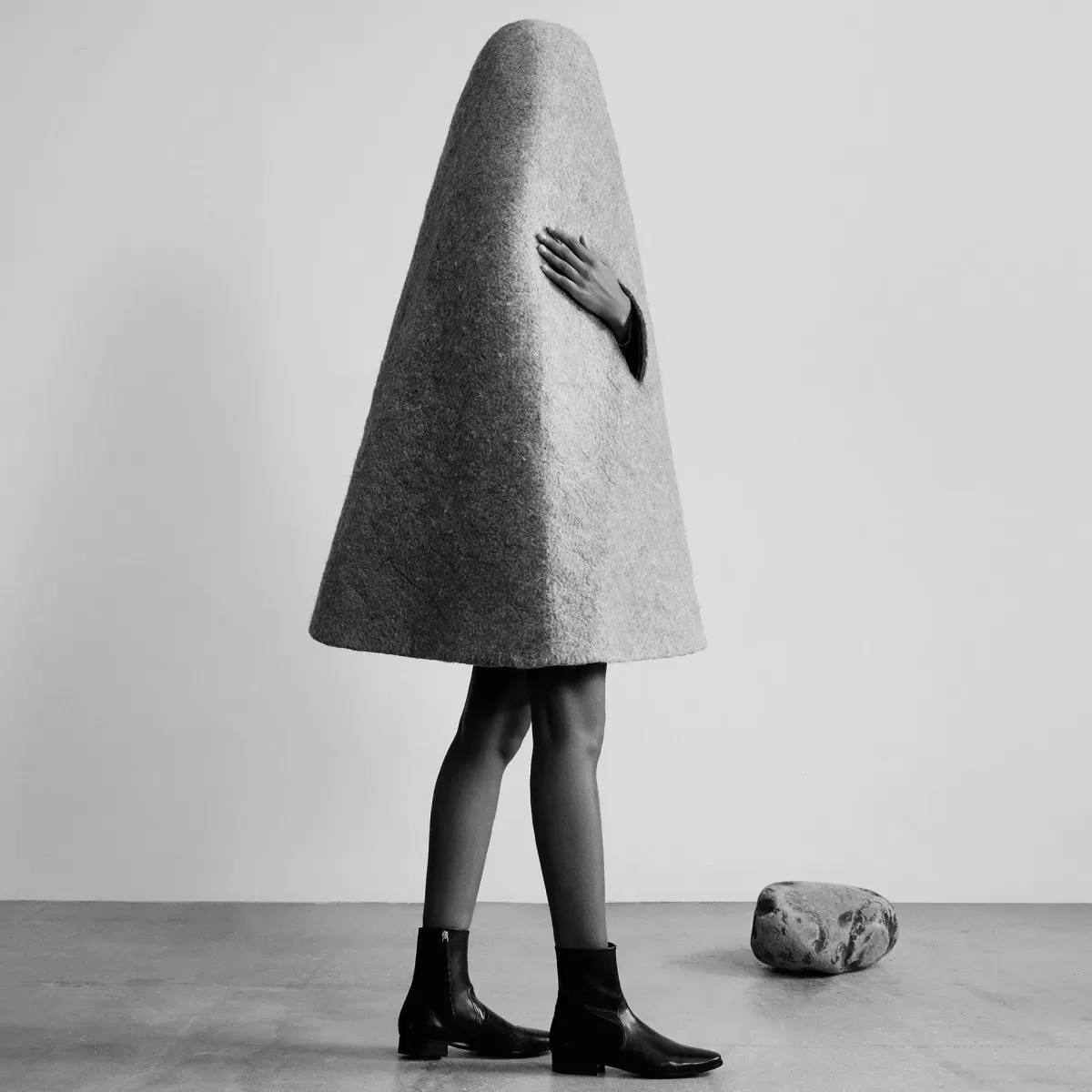 A sleek ankle boots with an androgynous rock look. Slim-fit, sheathing line, high upper closed with invisible zip.
